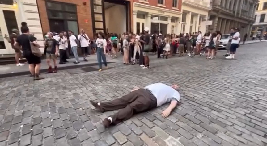 Unofficial intervention at the opening of the group show "Revolve" at Market Gallery, 51 Mercer Street, NY NY. Photos by James Aaronson and Charley Shealy.
